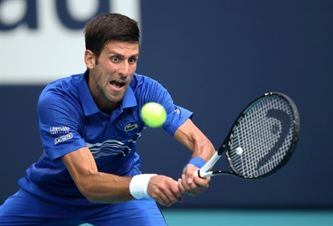 | Le Serbe Novak Djokovic lors de sa 8e de finale au tournoi de Miami face à l'Espagnol Roberto Bautista Agut, le 26 mars. |