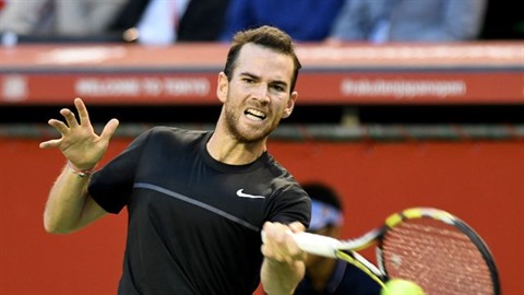 | Le Français Adrian Mannarino face au Belge David Goffin en finale du tournoi de Tokyo, le 8 octobre. |