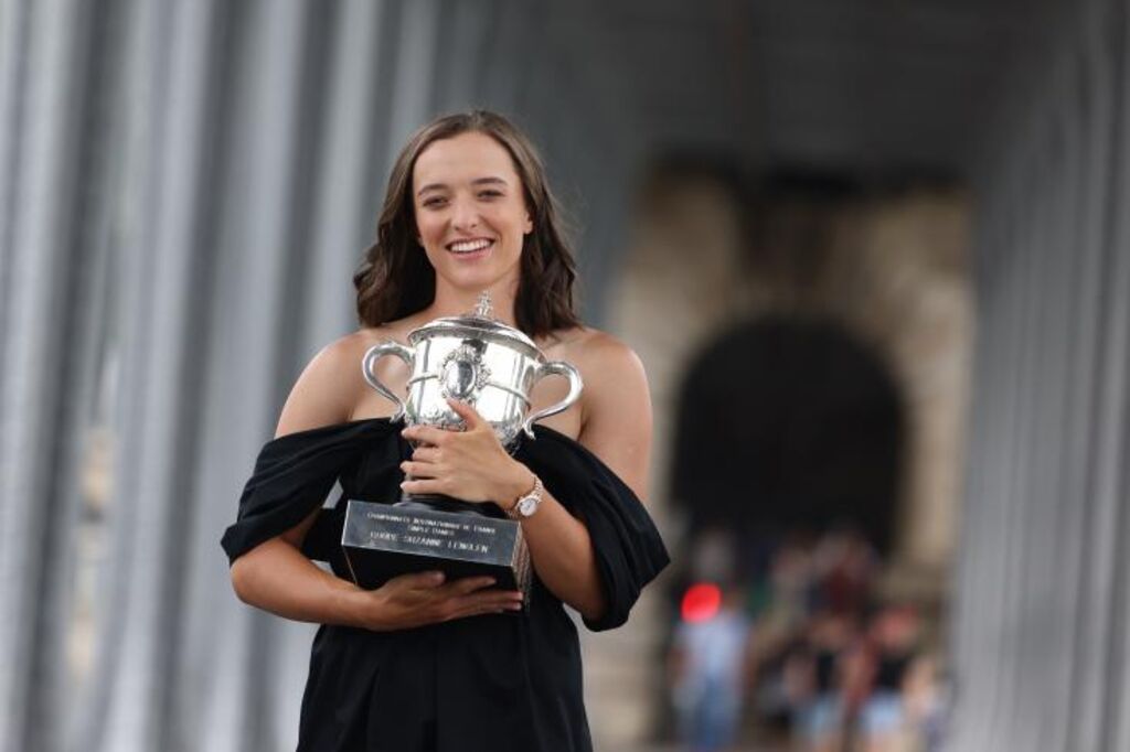 | La Polonaise Iga Swiatek pose avec le trophée Suzanne-Lenglen après sa victoire en finale du tournoi de Roland-Garros, le 11 juin à Paris. |
