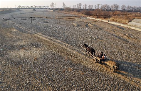 | Photo prise le 2 décembre 2011 près de la ville roumaine de Tisita, d'une charette chargée de sable provenant du lit de la Susita, asséchée à la suite d'un été plus chaud et sec que d'habitude. |