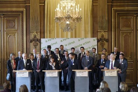 Les maires et représentants de ces villes ont adopté en début d'après-midi à l’Hôtel de Ville une déclaration dans laquelle elles s'engagent à "réduire d'au moins 40% (leurs) gaz à effet de serre d'ici 2030", un objectif en ligne avec celui de l'Union européenne.