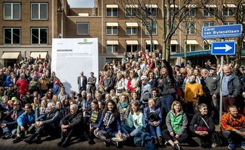 | Des dizaines de militants écologistes devant le siège de Shell à La Haye, le 5 avril. Photo: AFP/VNA/CVN |