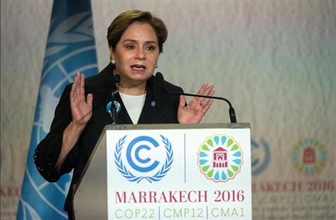 | Patricia Espinosa, la responsable climat de l'ONU, à Marrakech (Maroc) lors de la COP22, le 7 novembre 2016. |