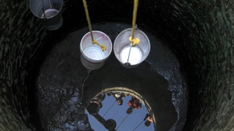 | Un puits dont le niveau d'eau ne cesse de baisser dans le village de Padal, lors d'une nouvelle vague de chaleur dans le Nord de l'Inde, le 2 juin 2019. |