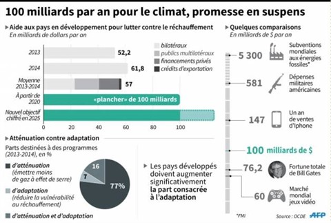 | 100 milliards par an pour le climat, promesse en suspens. |