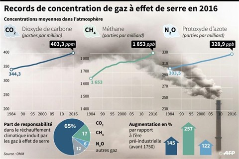 | Records de concentration de gaz à effet de serre en 2016. |
