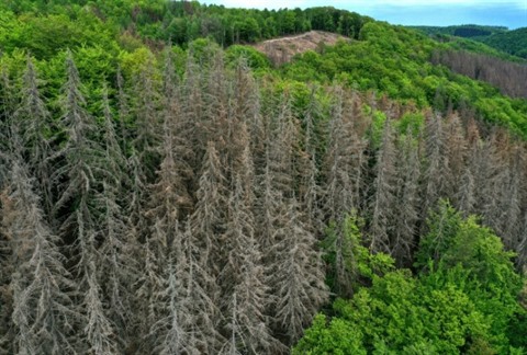 | Des arbres souffrant de la sécheresse près d'Iserlohn, en avril 2020, en Allemagne de l'Ouest. |