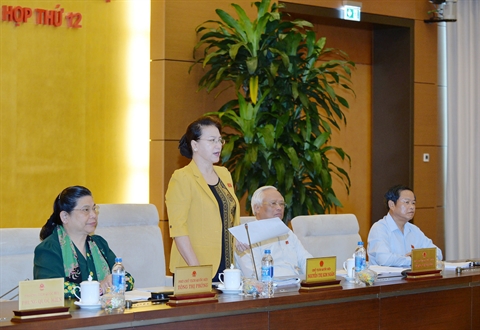 | Nguyên Thi Kim Ngân (debout) prend la parole à la cérémonie de clôture de la 12e session du Comité permanent de l'AN, le 12 juillet à Hanoï. |