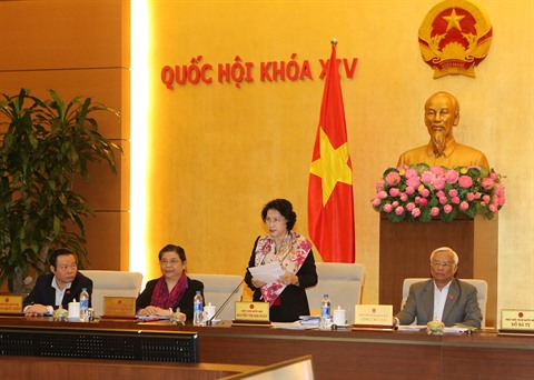 | La présidente de l'AN, Nguyên Thi Kim Ngân préside une séance de travail de la 5e session du comité permanent de l'AN. |