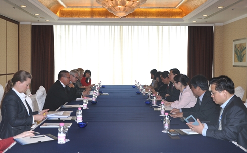 | Rencontre entre la délégation vietnamienne et la partie russe afin de débattre de la situation actuelle en Mer Orientale, le 18 mai à Qingdao (Chine). |