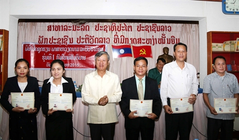 | Cérémonie de clôture du 1er cours de langue vietnamienne destiné aux cadres lao, le 13 août à Vientiane. |