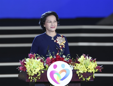 | La présidente de l'Assemblée nationale du Vietnam, Nguyên Thi Kim Ngân à la cérémonie de clôture du 3e Festival de la jeunesse Vietnam-Chine. |
