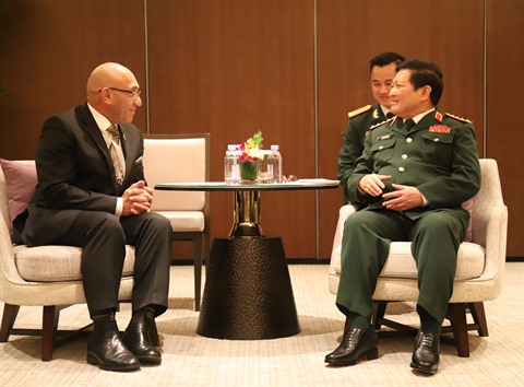 | Le ministre de la Défense, Ngô Xuân Lich (droite), lors d'une rencontre avec son homologue néo-zélandais Hon Ron Mark, le 1er juin à Singapour. |