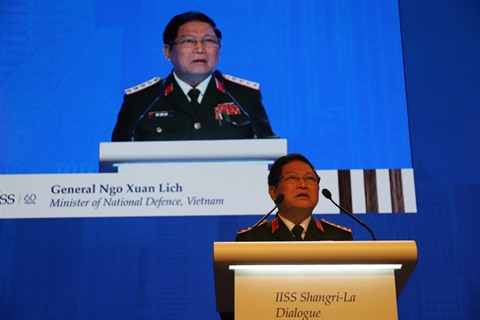 | Le ministre de la Défense, Ngô Xuân Lich, prend parole lors d'une séance plénière dans le cadre du 17e Dialogue de Shangri-La. |