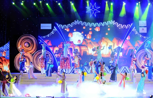 | Un numéro artistique lors de la cérémonie de clôture du Festival du Patrimoine de Quang Nam, le 26 juin. |