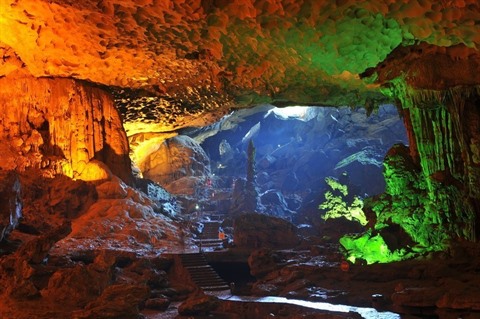 | La grotte Sung Sôt sur la baie de Ha Long, province de Quang Ninh (Nord). |