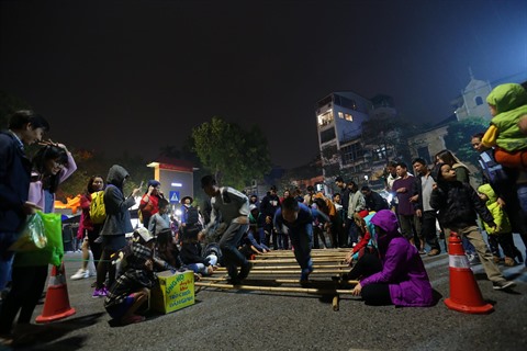 | Beaucoup de jeux traditionnels se déroulent dans l'espace piéton autour du lac de l'Épée restituée (au cœur de Hanoï) le week-end. |