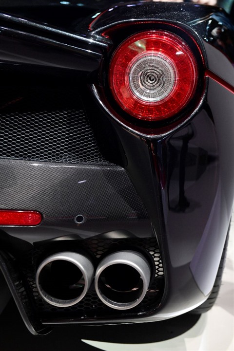 | Les pots d'échappement d'une Ferrari Aperta au Mondial de l'automobile à Paris le 29 septembre dernier. |