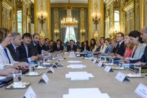 | Le Conseil des ministres autour du président Emmanuel Macron, le 22 juin à Paris. |