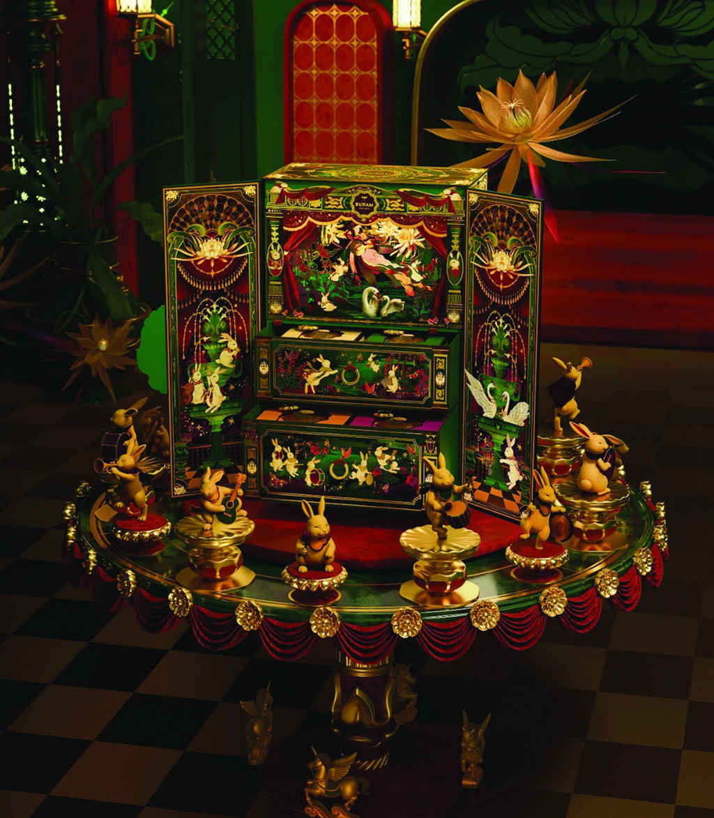Depuis 2020, RuNam développe le concept Tủ sân khấu (L’armoire de scène), transformant l’écrin de gâteaux en objet décoratif. L’édition 2025, intitulée Ban giao huong trang ram (Symphonie de la pleine lune), s’inspire de l’architecture coloniale française du début du XXe siècle.