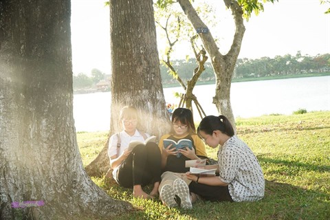 Lire chez soi, à la bibliothèque ou dans un café-bibliothèque, c’est un loisir habituel. Mais feuilleter un livre au bord de la romantique rivière des Parfums, c’est une expérience exceptionnelle ! C’est pourquoi le coin lecture de l’HUE SEED attise la curiosité d’un grand nombre de visiteurs. "Les parcs et la rue piétonne à côté du fleuve de Parfum nous ont paru un lieu idéal pour établir le projet. L'espace est tranquille, abrité par la toiture des arbres environnants, il fait le lien entre l’homme et la nature", explique la co-fondatrice Kiêu Xuyên.