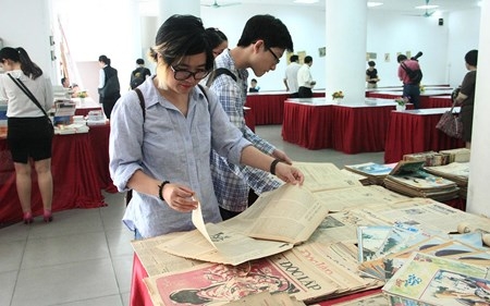 | Une exposition de vieux journaux a été organisée fin avril à Hanoi. |