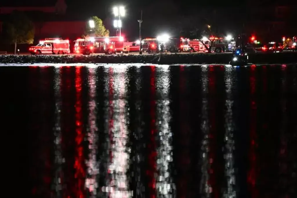 | Des véhicules et des équipes de secouristes sur les bords du fleuve Potomac à Washington après une collision aérienne le 29 janvier 2025. |