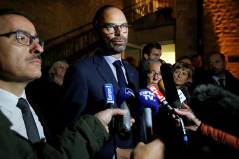 | Edouard Philippe lors d'un point presse à Millas, proche de Perpignan, le 14 décembre. |