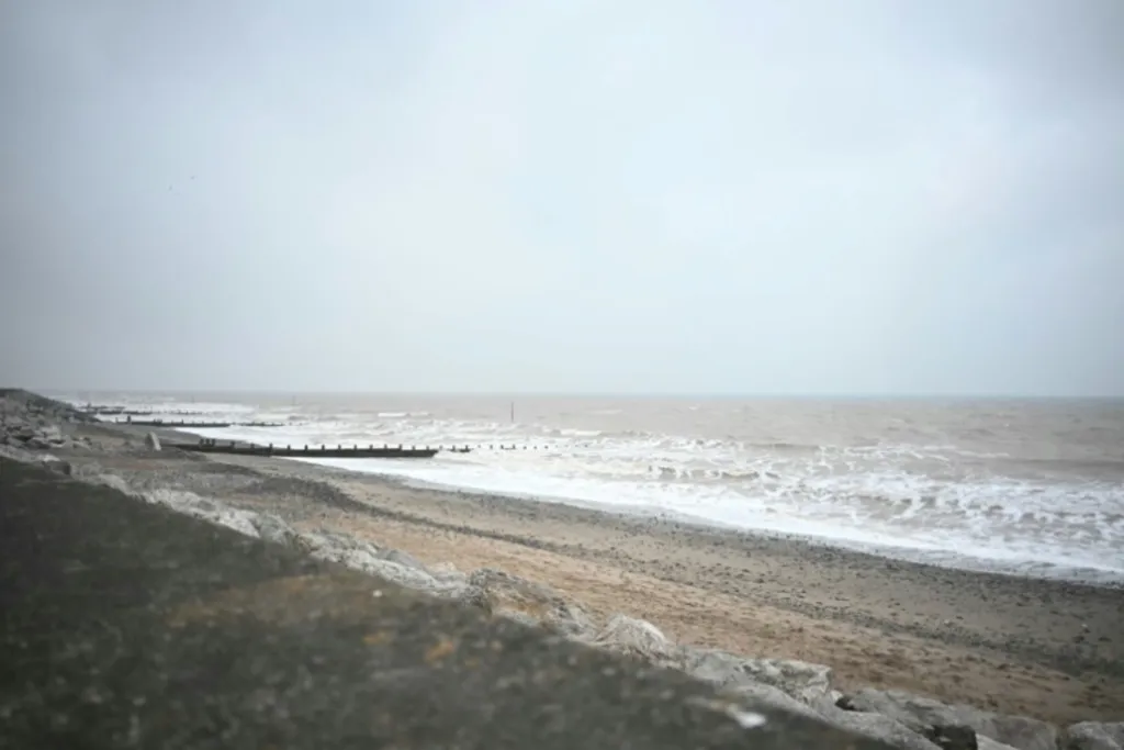 | Une plage à Withernsea, en mer du Nord où un cargo et un pétrolier sont entrés en collision, le 10 mars en Angleterre. |