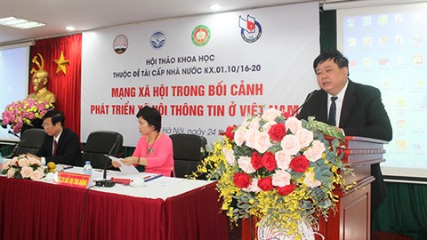 | Le directeur général de la VOV, Nguyên Thê Ky, s'exprime lors du colloque sur le réseau social, tenu le 24 octobre à Hanoï. |