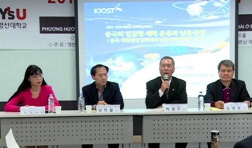 Selon le docteur Chu Manh Hung de la Faculté de droit de Hanoi, les experts sud-coréens présents à ce colloque considèrent que ce qui est appelé "ligne en langue de bœuf" de la Chine est unilatérale et juridiquement, historiquement et pratiquement dépourvue de tout fondement.