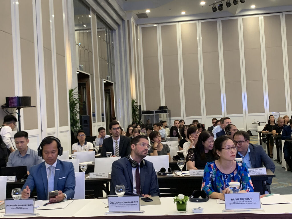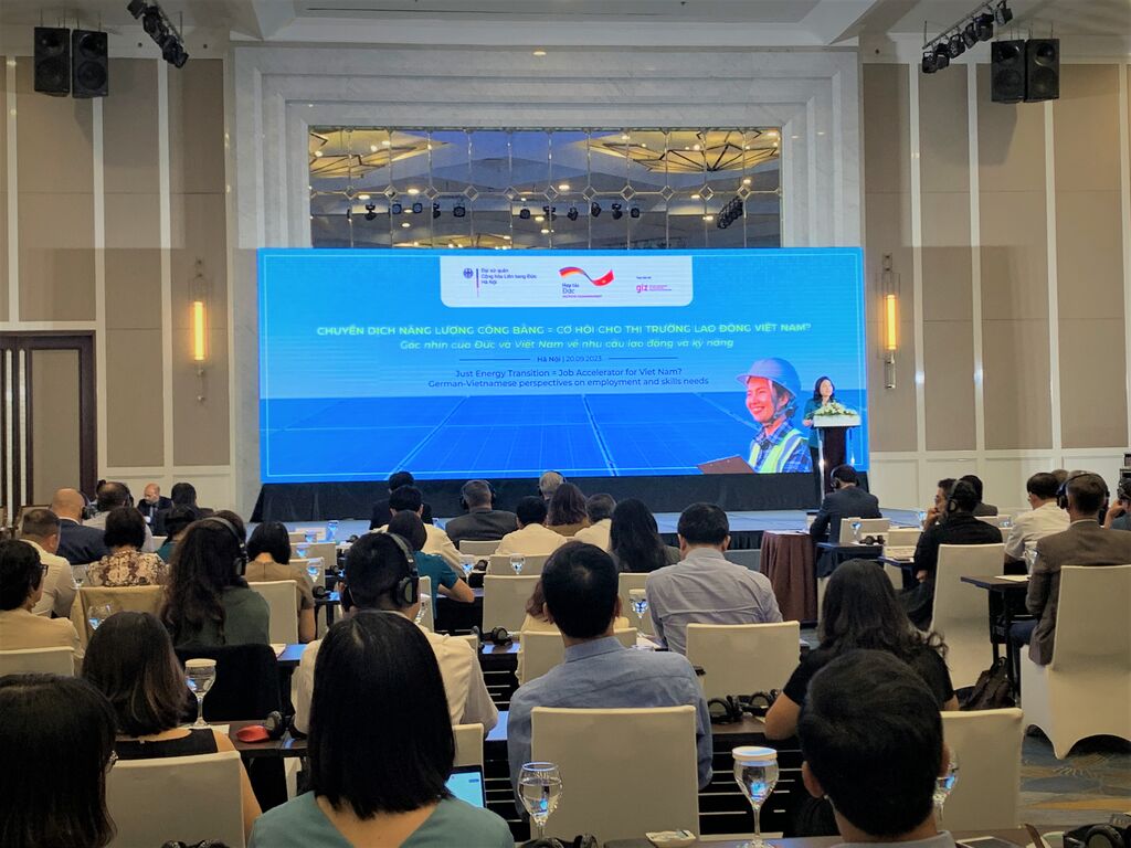 Cet événement a rassemblé près de 200 délégués en présentiel et plus de 300 autres en ligne, représentant diverses institutions telles que l'Assemblée nationale, le ministère du Travail, des Invalides de guerre et des Affaires sociales, le ministère de l'Industrie et du Commerce, l'Électricité du Vietnam, la Chambre de Commerce et d'Industrie du Vietnam, l'Académie vietnamienne des sciences sociales et humaines, l'Institut allemand de recherche sur l'emploi, l'Institut pour un avenir durable de l'Université de technologie de Sydney, ainsi que des acteurs du secteur privé.