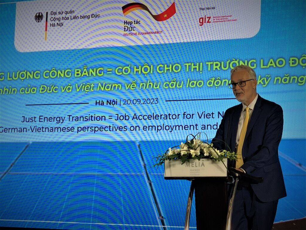 Docteur Guido Hildner, ambassadeur d'Allemagne au Vietnam, a souligné : "Je voudrais féliciter le gouvernement du Vietnam pour son objectif ambitieux de parvenir à zéro émission nette d'ici 2050, et pour son engagement global dans le cadre du Partenariat pour une transition énergétique juste (JETP) entre le Vietnam et le G7 élargi, signé en décembre dernier. La République fédérale d'Allemagne est un partenaire fiable et de longue date du Vietnam dans ce domaine. Le premier projet commun entre nos deux pays dans le domaine des énergies renouvelables a été lancé en 2009. Notre coopération n'a cessé de croître, et aujourd'hui, la valeur totale de tels projets est estimée à plus de 1 milliard d'euros".