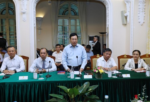 | Le vice-Premier ministre et ministre des Affaires étrangères, Pham Binh Minh (centre), préside le 28 juillet à Hanoï un colloque sur les 25 ans d’adhésion du Vietnam à l’Association des Nations d’Asie du Sud-Est. |