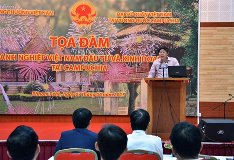 | Le vice-ministre vietnamien de l'Industrie et du Commerce, Nguyên Câm Tu, lors du colloque sur l'investissement et les affaires des entreprises vietnamiennes au Cambodge, le 7 avril à Phnom Penh. |