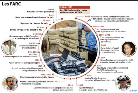 | Dates clés de la guérilla des FARC avec le début de la phase finale de leur désarmement. |