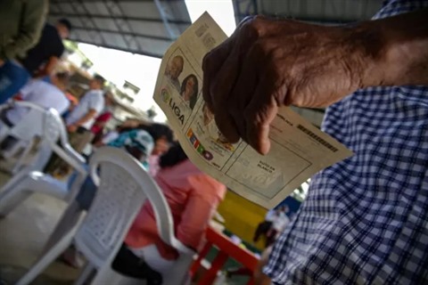 | Un homme tient un bulletin de dans un centre de vote lors du second tour de l'élection présidentielle à Suarez, dans le département du Cauca, en Colombie, le 19 juin. |