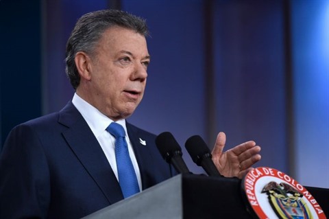 | La paix en Colombie est proche", a assuré le président Juan Manuel Santos lors d'une conférence de presse à Bogota, le 5 octobre. |