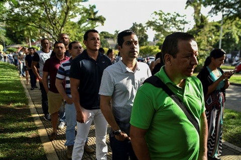 | Des électeurs devant un bureau de vote pour la présidentielle colombienne, le 27 mai à Cali. |