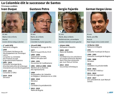 Outre la révision de l'accord, qu'il juge laxiste envers les ex-guérilleros exemptés de prison s'ils admettent leurs crimes, Ivan Duque, 41 ans, promet d'éradiquer la drogue, la corruption et de relancer la 4e économie d'Amérique latine, en berne avec 1,8% de croissance.