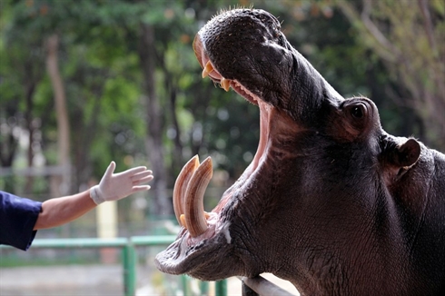 | Orion, un hippopotame du zoo de Medellin en Colombie, issu de l'ancien ranch de Pablo Escobar, le 27 janvier 2010. |