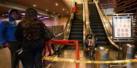 | Des personnes attendant dans le centre commercial où s'est produit un attentat le 17 juin 2017 à Bogota. |