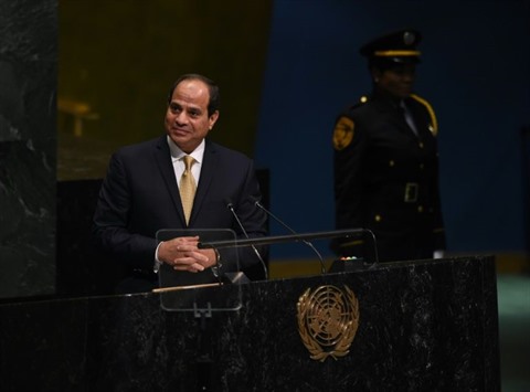 | Le président égyptien Abdel Fattah al-Sissi à la tribune de l'ONU, le 20 septembre à New York. |