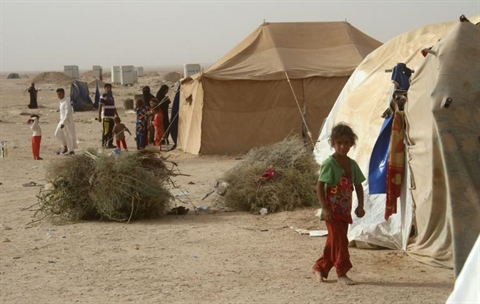 | Des Irakiens ayant fui Fallouja dans un camp de réfugiés à Ramadi, en Irak, le 18 juin. |