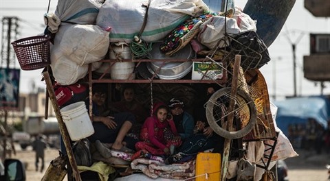 | Des civils fuient l'offensive turque dans le Nord-Est de la Syrie, près de Tal Abyad, le 11 octobre. |