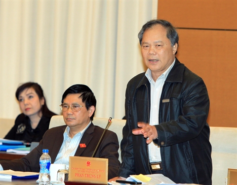 | Le président de la Commission juridique de l’Assemblée nationale Phan Trung Ly (debout), lors du débat sur les procédures administratives et civiles, le 12 mars à Hanoi. |
