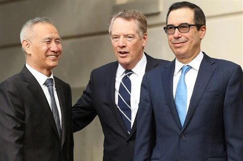 De gauche à droite : le vice-Premier ministre chinois Liu He, le secrétaire américain au Commerce Robert Lighthizer et le secrétaire au Trésor Steven Mnuchin à Washington. Photo : AFP/VNA/CVN |