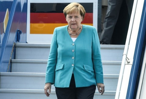 | La chancelière allemande Angela Merkel le 24 août 2019 à Biarritz en France. |