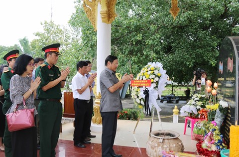 | La délégation de l'ambassade du Vietnam offre les bâtonnets d'encens au cimetière des morts pour la Patrie de Ban Kon, à Vientiane |