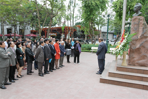 | Déposer des gerbes de fleurs au pied du buste de José Marti, le 28 janvier à Hanoi. |